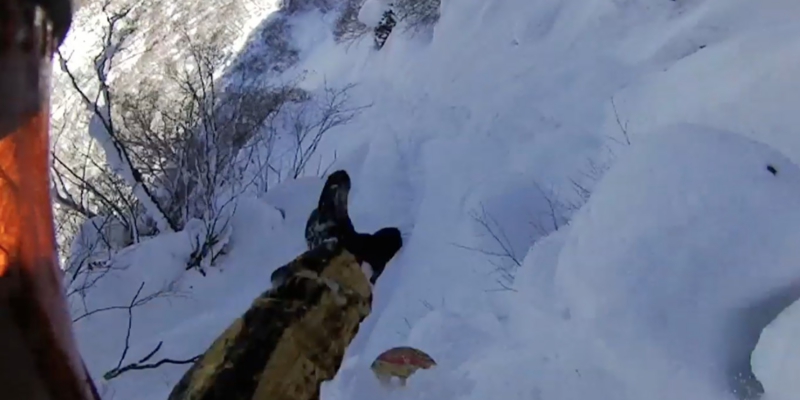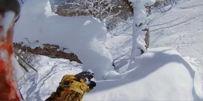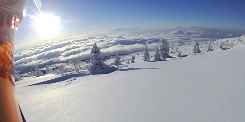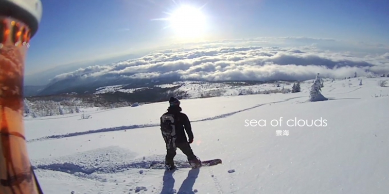 このパートは、なんと言ってもこの奇麗な雲海の景色。景色と一緒に雰囲気も伝えたくて、その場の音を使用しました。短いパートですが、このひと時はスノーボードを止められなくなる体験です。