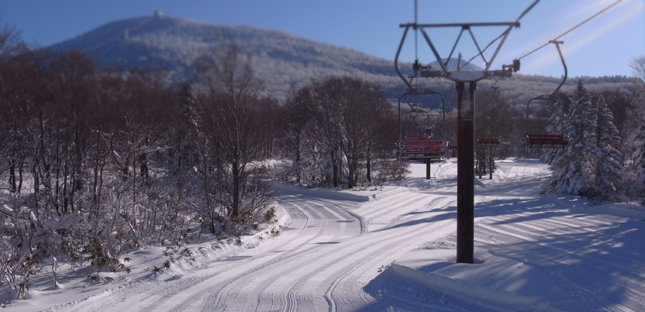 晴れた日には八甲田山と岩木山を、リフトから、滑りながら見れる八甲田国際スキー場。